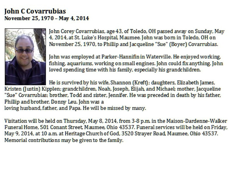 Covarrubias, John, Maison Dardenne Walker Funeral Home