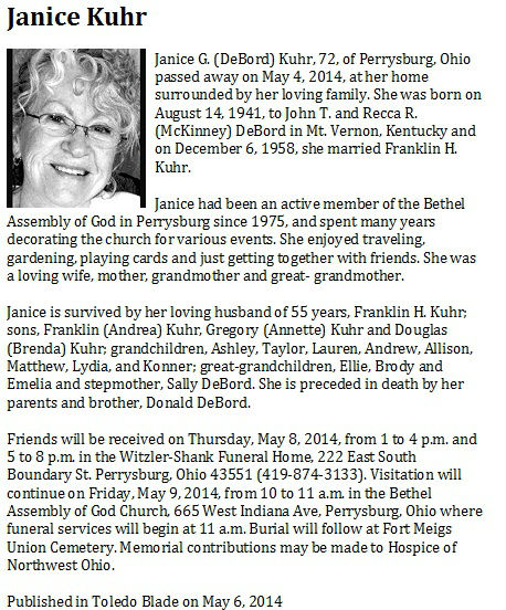 Kuhr, Janice G, Toledo Blade; May 6, 2014