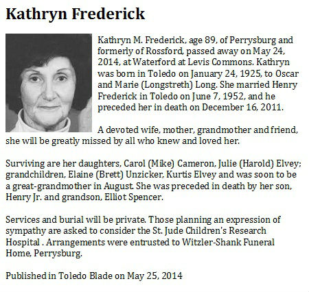 Frederick, Kathryn M, Toledo Blade; May 25, 2014