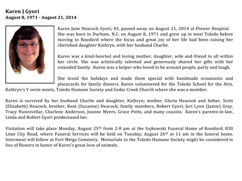Gyori, Karen J, Sujkowski Funeral Home of Rossford