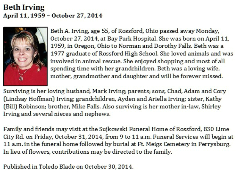 Irving, Beth, Sujkowski Funeral Home of Rossford