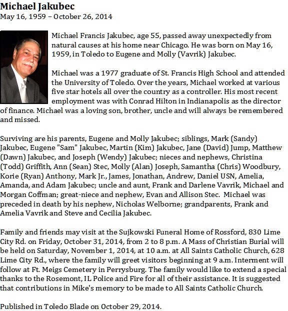 Jakubec, Michael, Sujkowski Funeral Home of Rossford