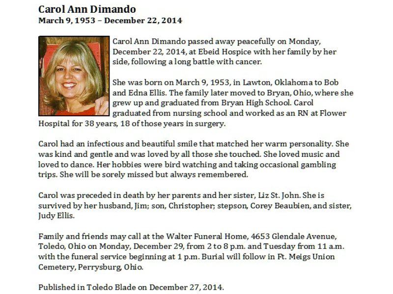 Dimando, Carol, Walter Funeral Home, Toledo, Oh