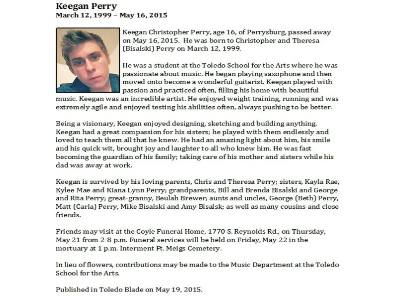 Perry, Keegan, Coyle Funeral Home, Toledo, OH Published in Toledo Blade; 05/16/2015