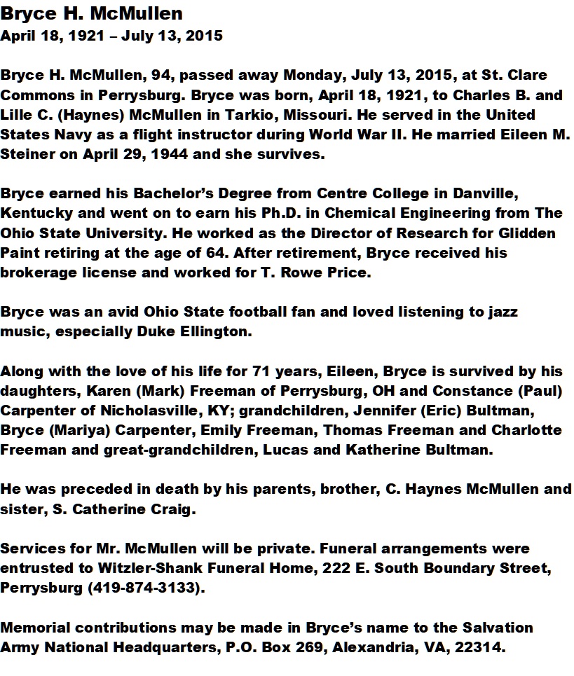 McMullen, Bryce - Obituary, Witzler Shank Funeral Home, Perrysburg, OH