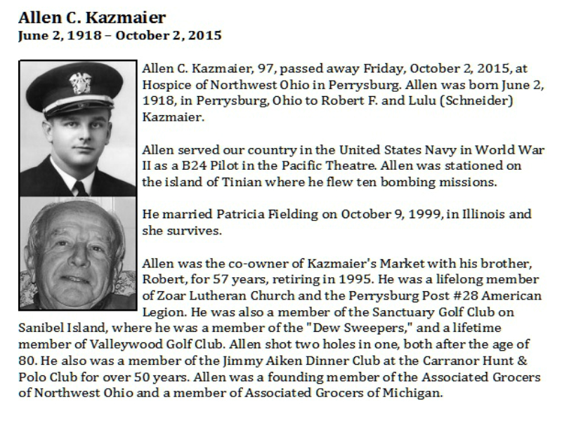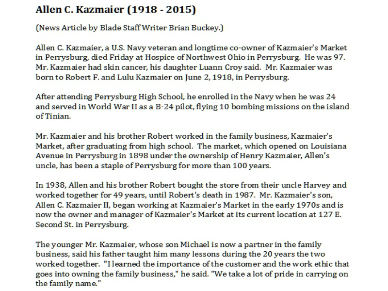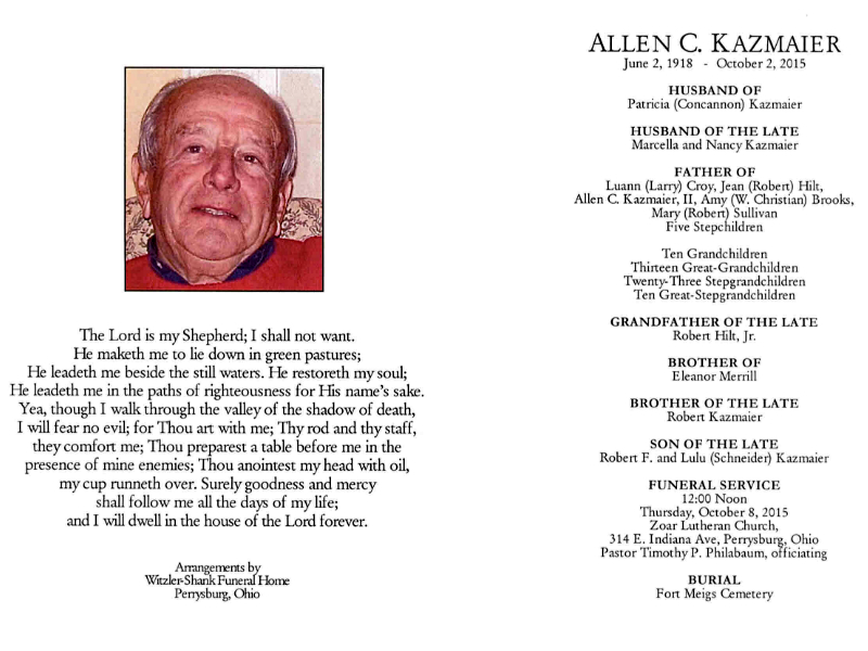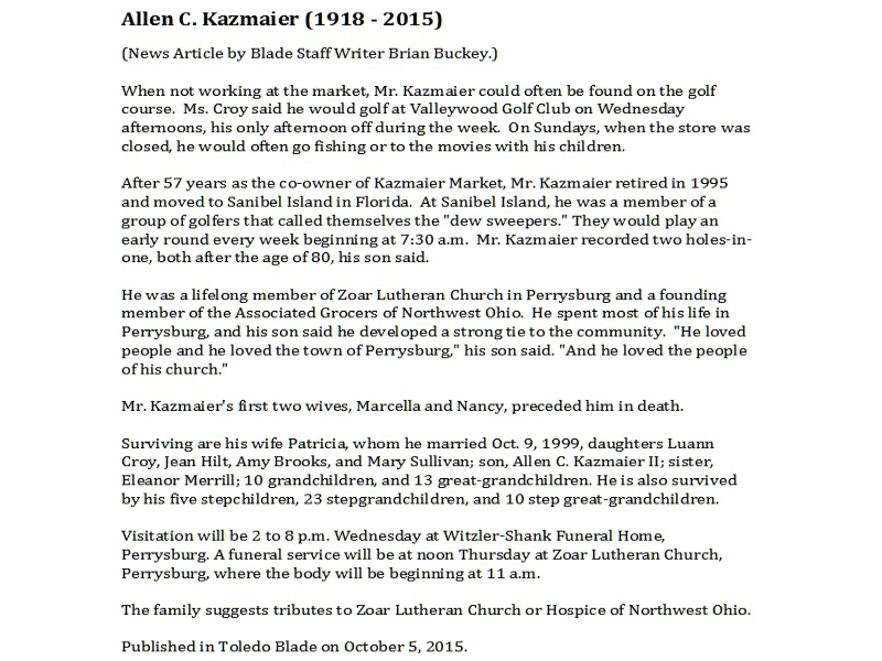 Kazmaier, Allen - Obituary pg 2, Witzler Shank Funeral Home, Perrysburg, OH Published in Toledo Blade; 10/05/2015