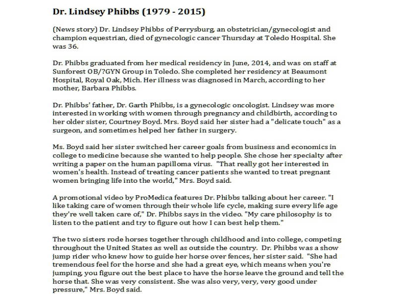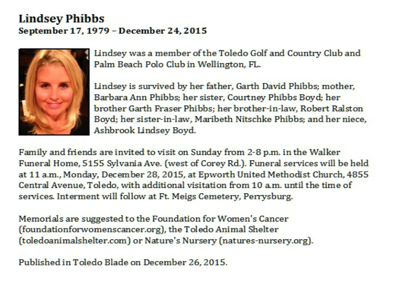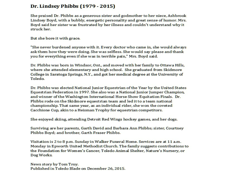 Phibbs, Lindsey - News Article pg 2, Walker Funeral Home, Toledo, OH Published in Toledo Blade; 12/26/2015
