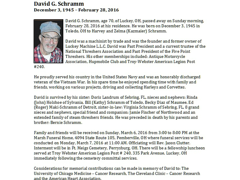 Schramm. David, Marsh Funeral Home, Pemberville, OH
