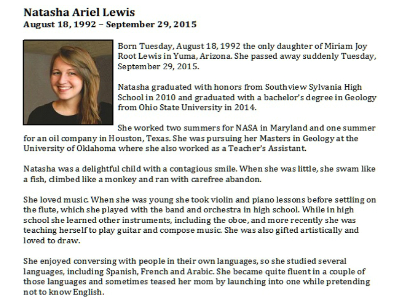 Lewis, Natasha - Obituary pg 2, Coyle Funeral Home, Toledo, OH