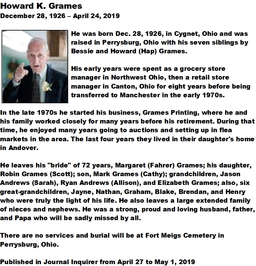 Grames, Howard - Obituary, Affordable Cremation of Connecticut