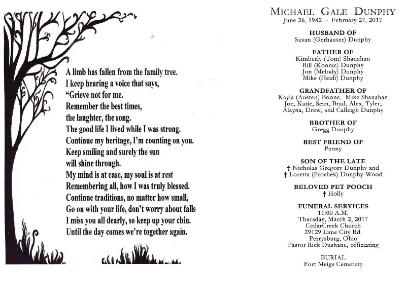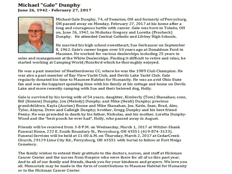 Dunphy, Michael - Obituary, Witzler Shank Funeral Home, Perrysburg, OH