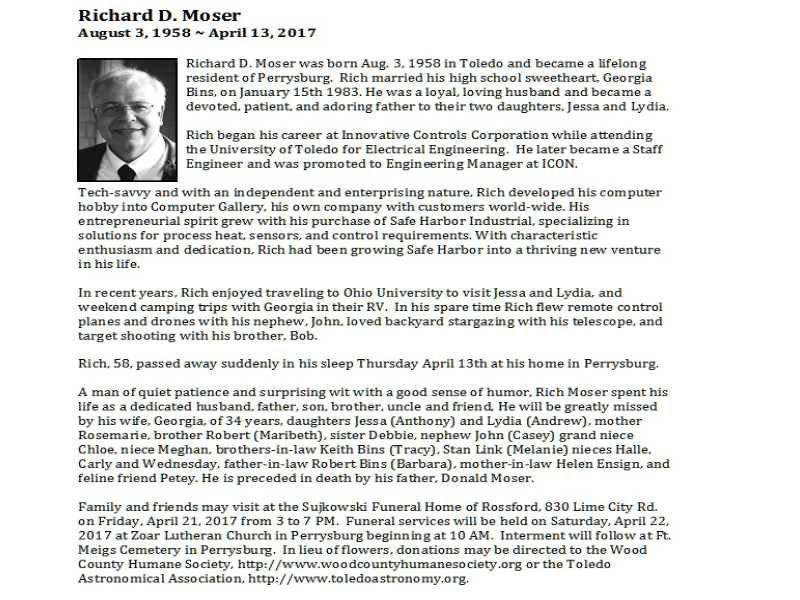 Moser, Richard, Sujkowski Funeral Home, Rossford, OH