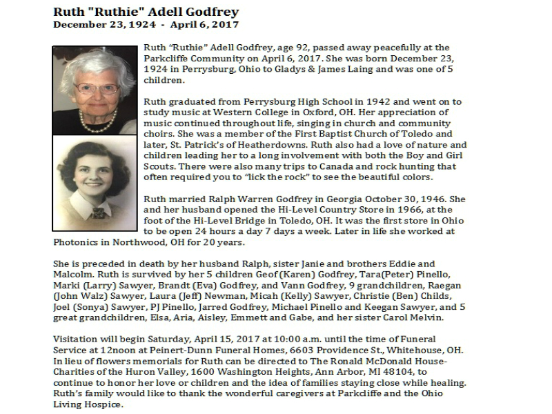 Godfrey, Ruth, Peinert-Dunn Funeral Home, Whitehouse, OH