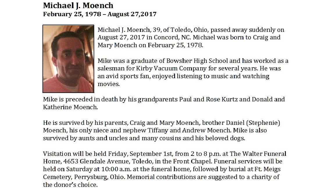 Moench, Michael, Walter Funeral Home, Toledo, OH