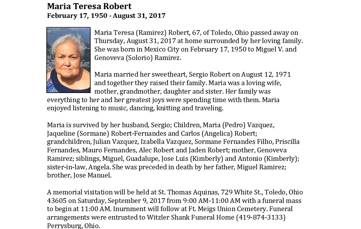 Robert, Maria, Witzler Shank Funeral Home, Perrysburg, OH and Cremation Society of Toledo, OH