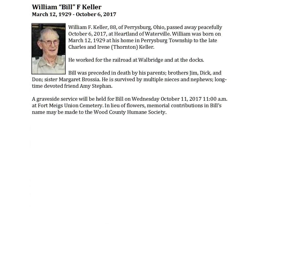 Keller, William, Witzler Shank Funeral Home, Perrysburg, OH