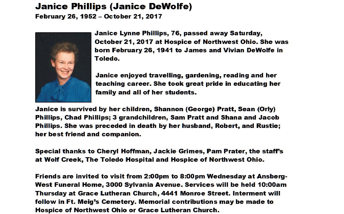 Phillips, Janice, Ansberg-West Funeral Home, Toledo, OH