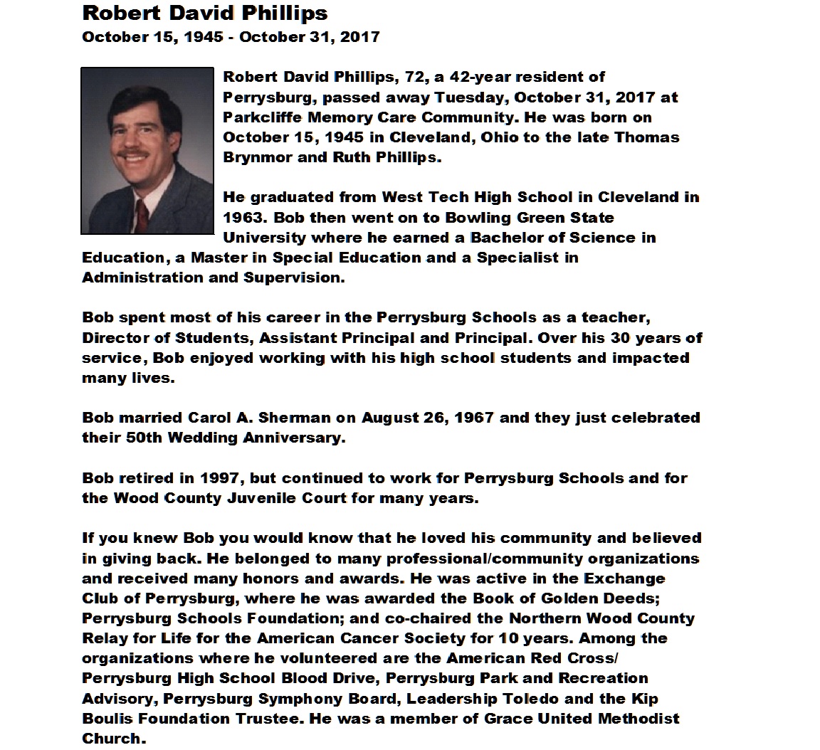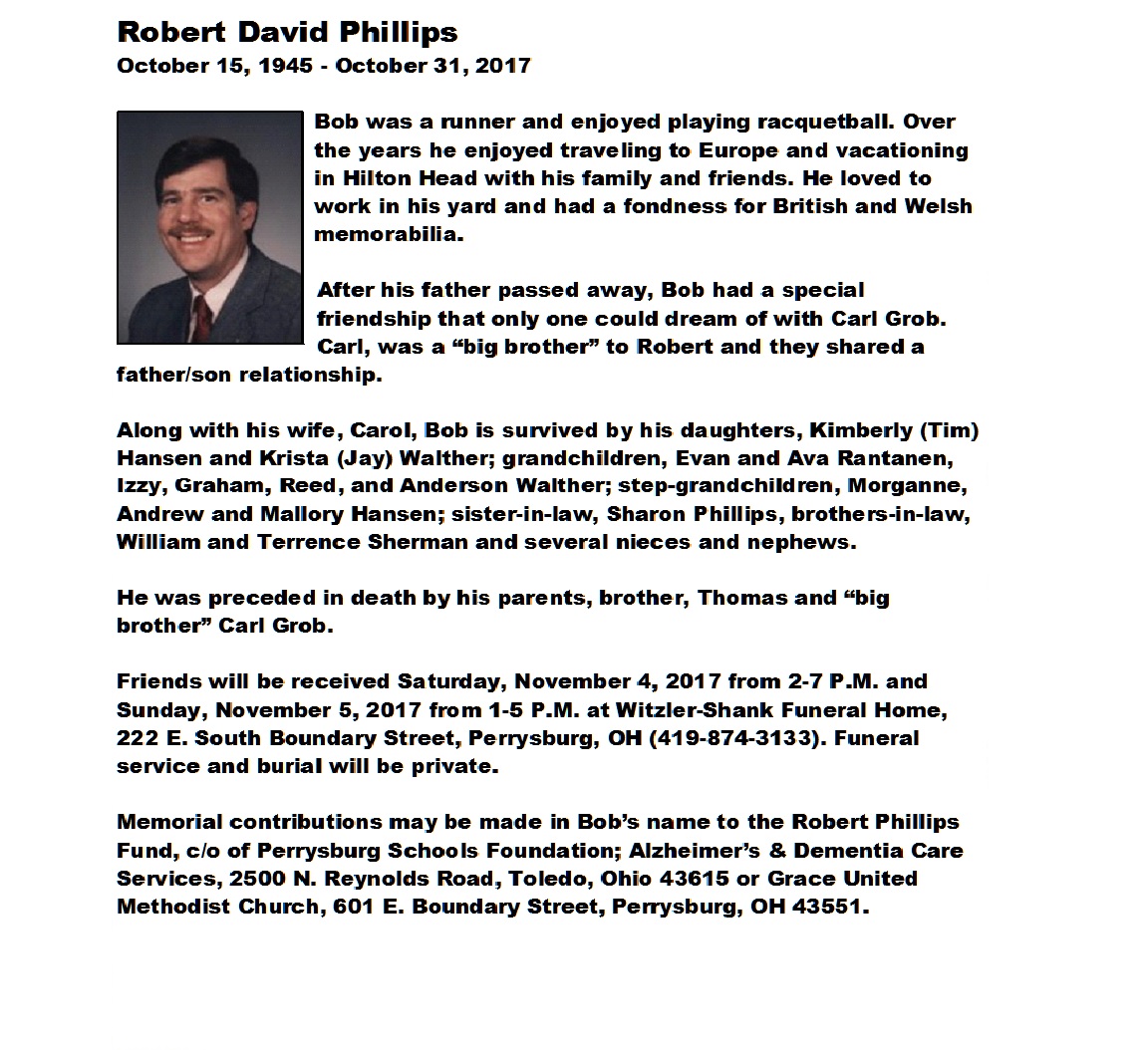 Phillips, Robert - Obituary pg 1, Witzler Shank Funeral Home, Perrysburg, OH
