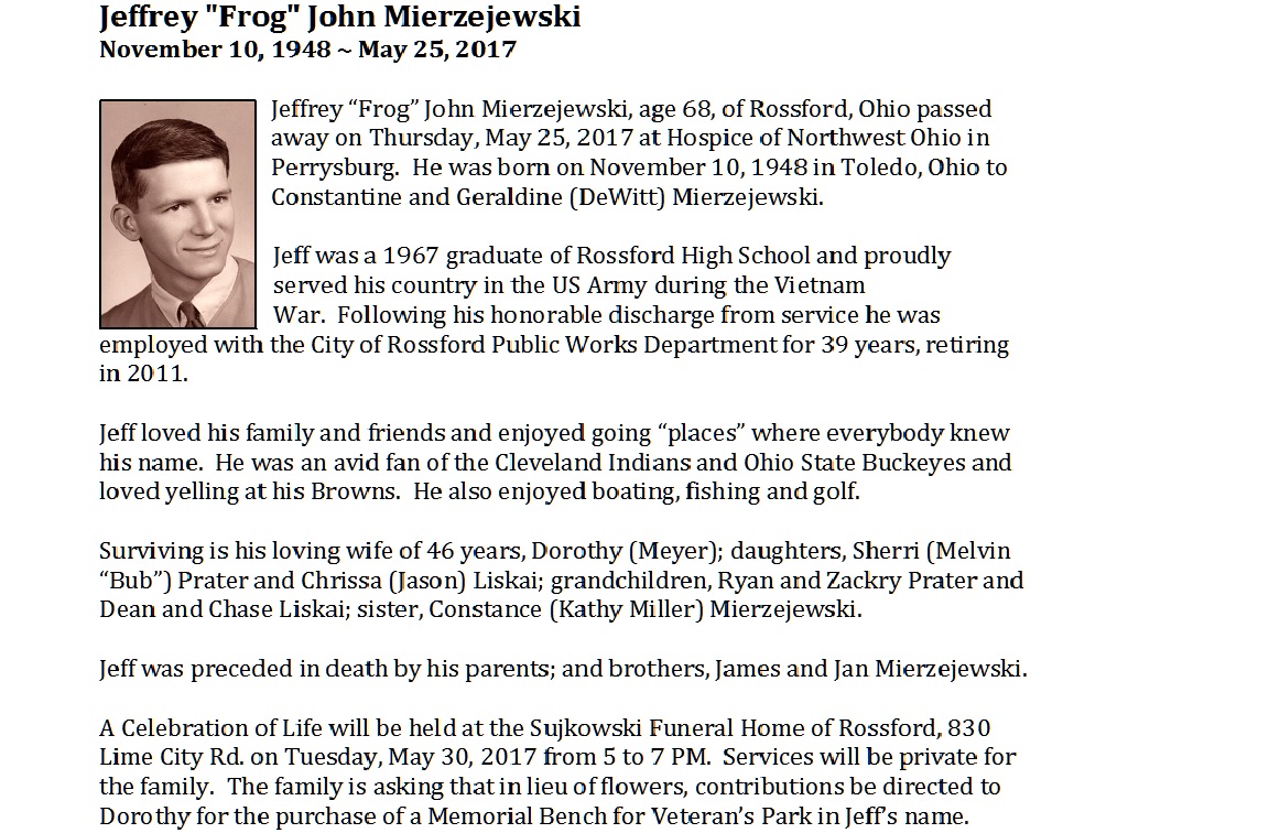 Mierzejewski, Jeffrey, Sujkowski Funeral Home, Rossford, OH