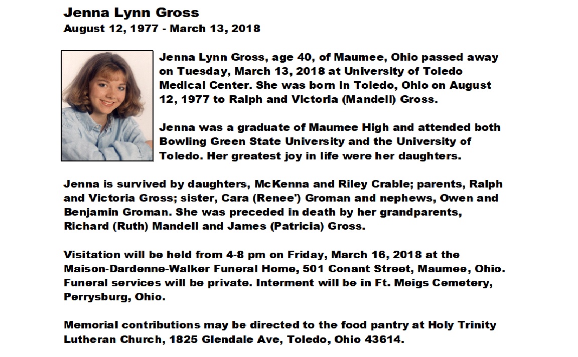 Gross, Jenna, Maison-Dardenne-Walker Funeral Home, Maumee, OH
