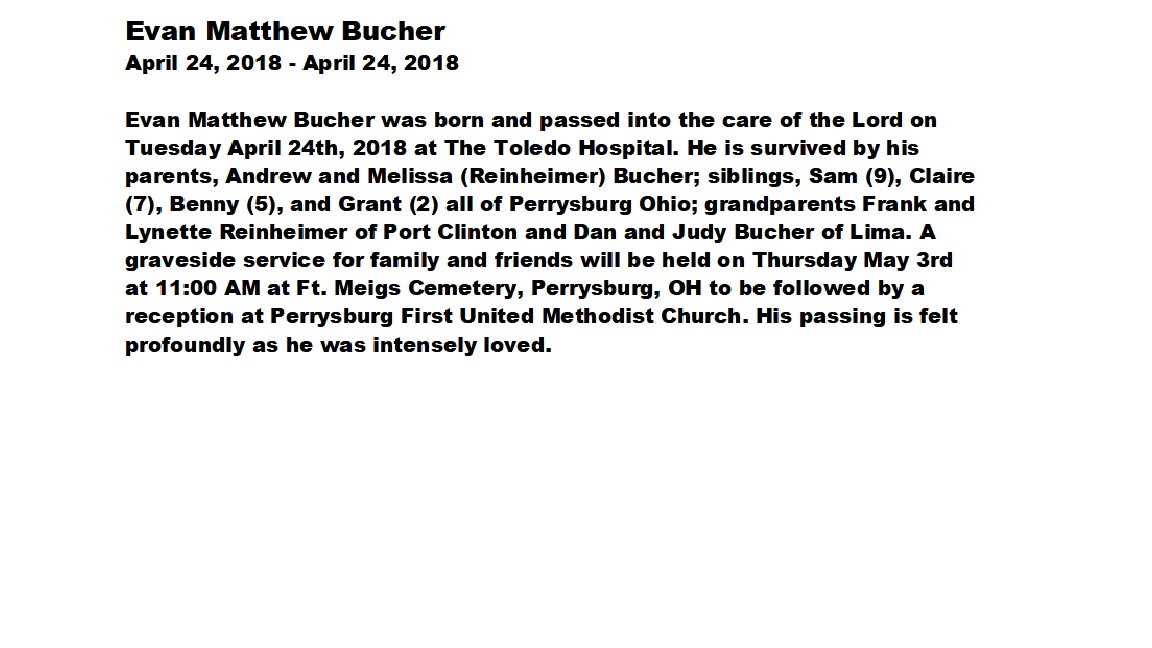 Bucher, Evan, Maison-Dardenne-Walker Funeral Home, Maumee, OH