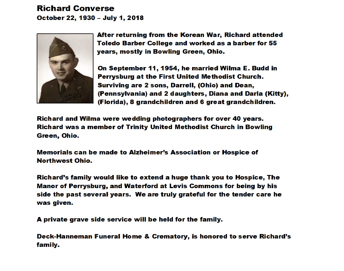 Converse, Richard - Obituary pg 1, Deck-Hanneman Funeral Home