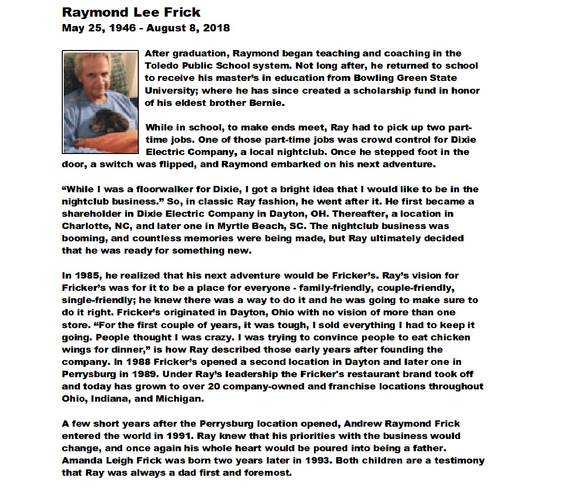 Frick, Raymond - Obituary pg 2, Witzler Shank Funeral Home, Perrysburg, OH