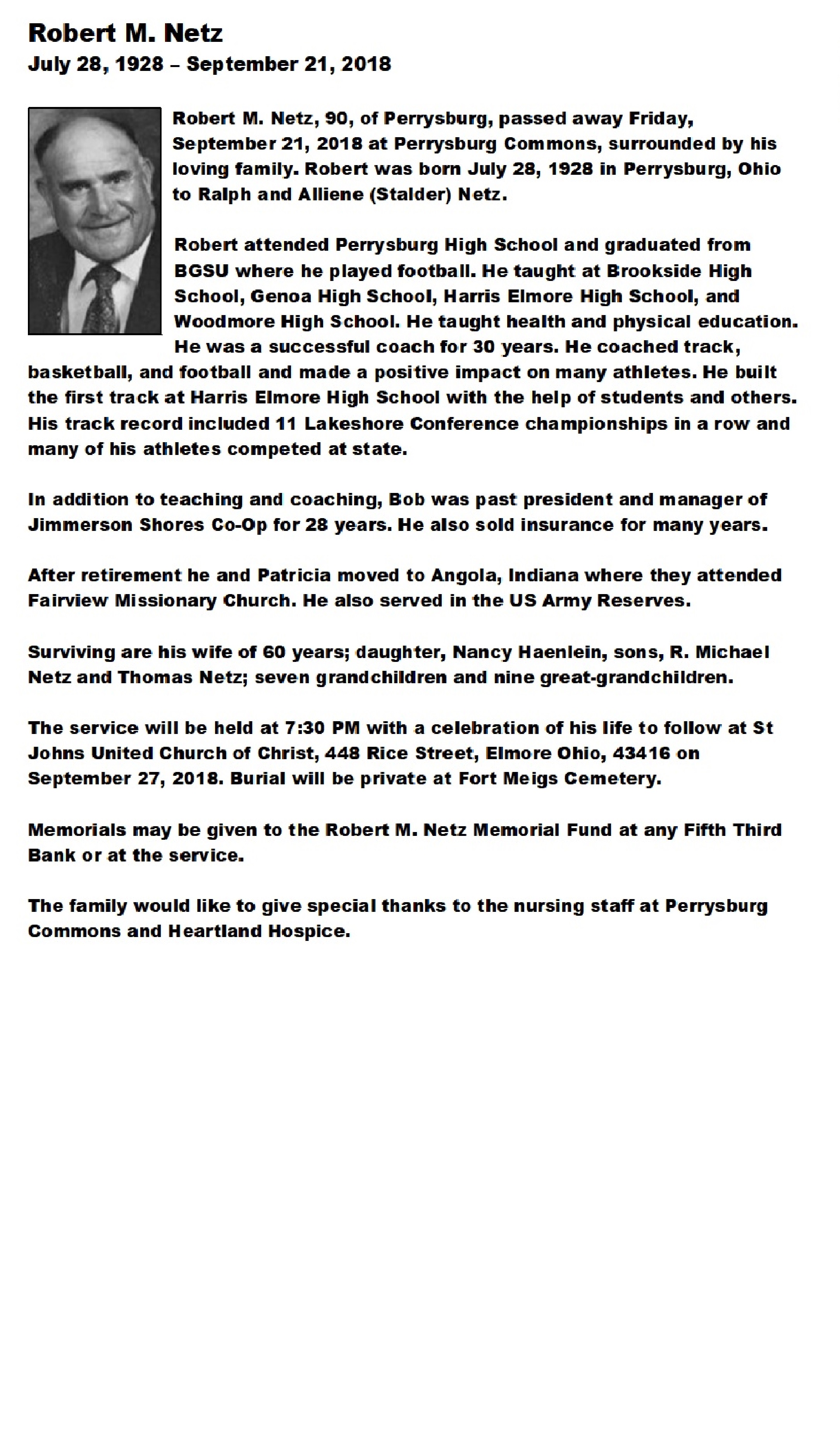 Netz, Robert, Witzler Shank Funeral Home, Perrysburg, OH