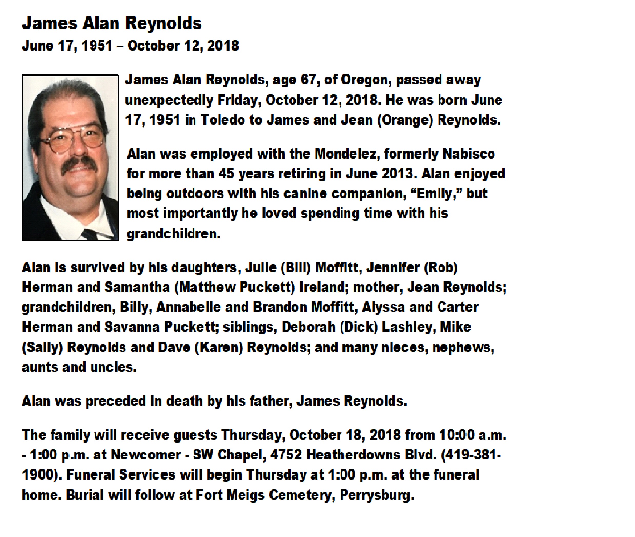 Reynolds, James, Newcomer Funeral Home SW, Toledo, OH