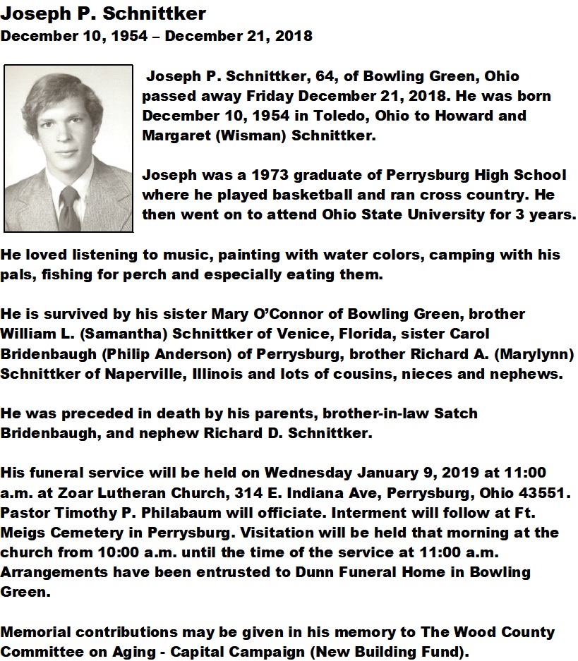 Schnittker, Joseph P, Dunn Funeral Home, Bowling Green, OH