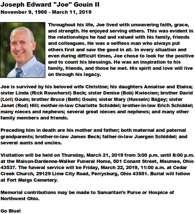 Gouin II, Joseph - Obituary pg 2, Maison-Dardenne-Walker Funeral Home, Maumee, OH