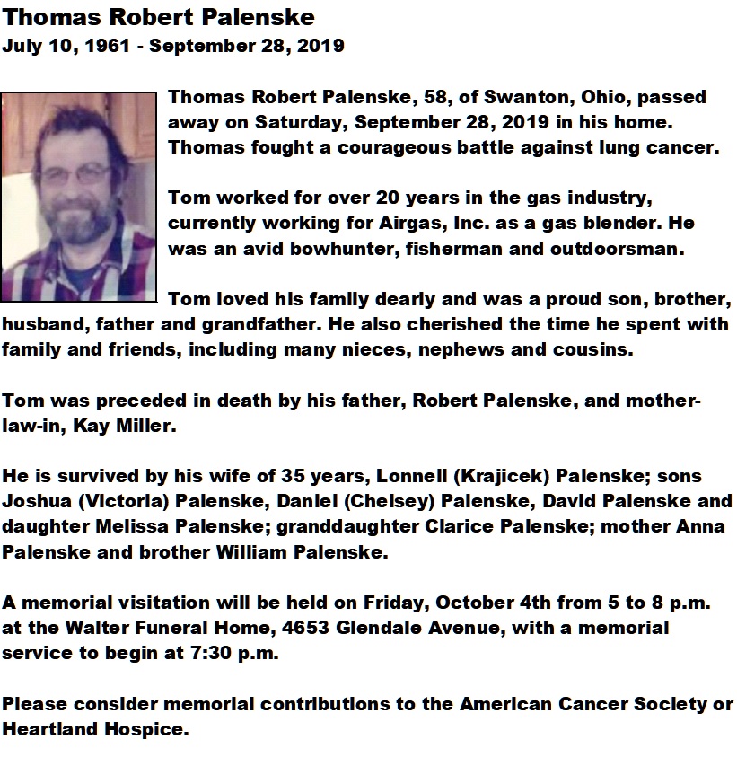 Palenski, Thomas - Obituary, Walter Funeral Home, Toledo, OH
