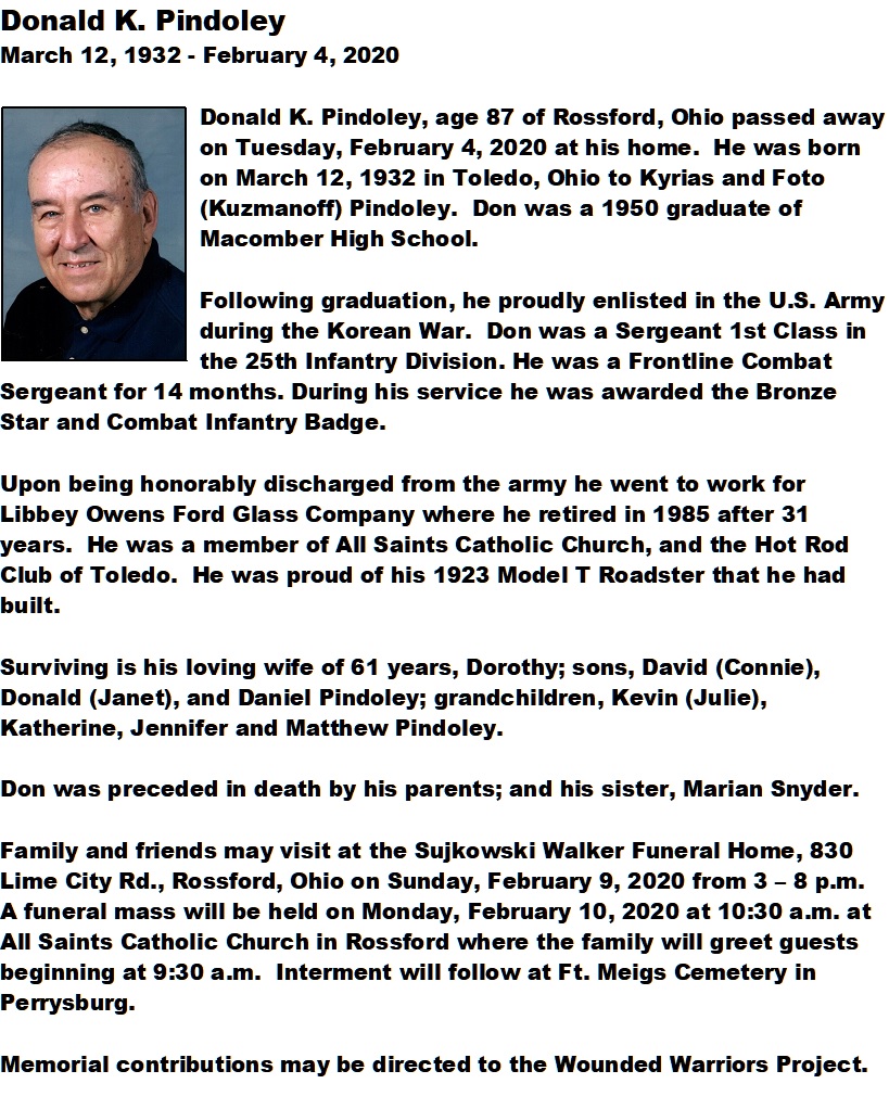 Pindoley, Donald - Obituary, Sujkowski-Walker Funeral Home, Rossford, OH