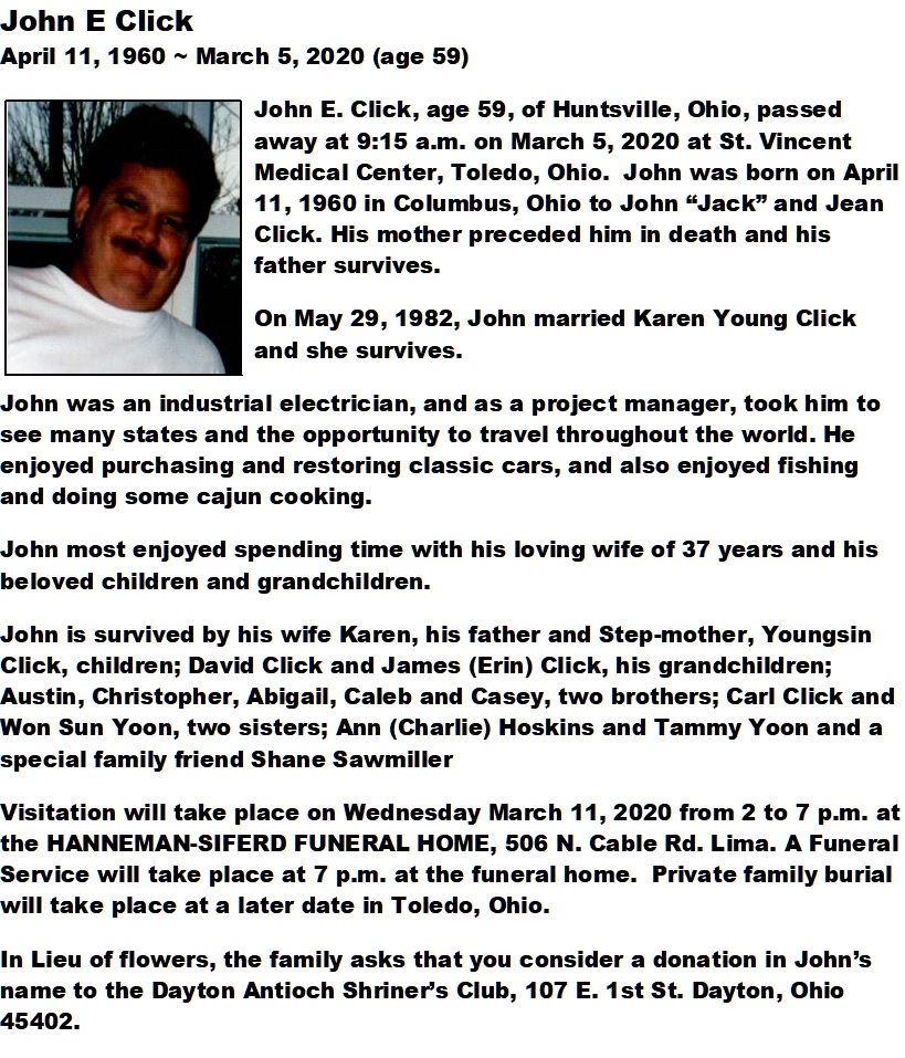 Click, John - Obituary, Hanneman-Siferd Funeral Home, Lima, OH