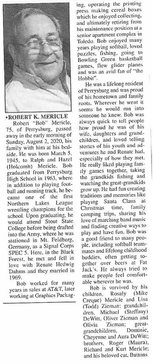 Mericle, Robert - Obituary, Witzler Shank Walker Funeral Home, Perrysburg, OH