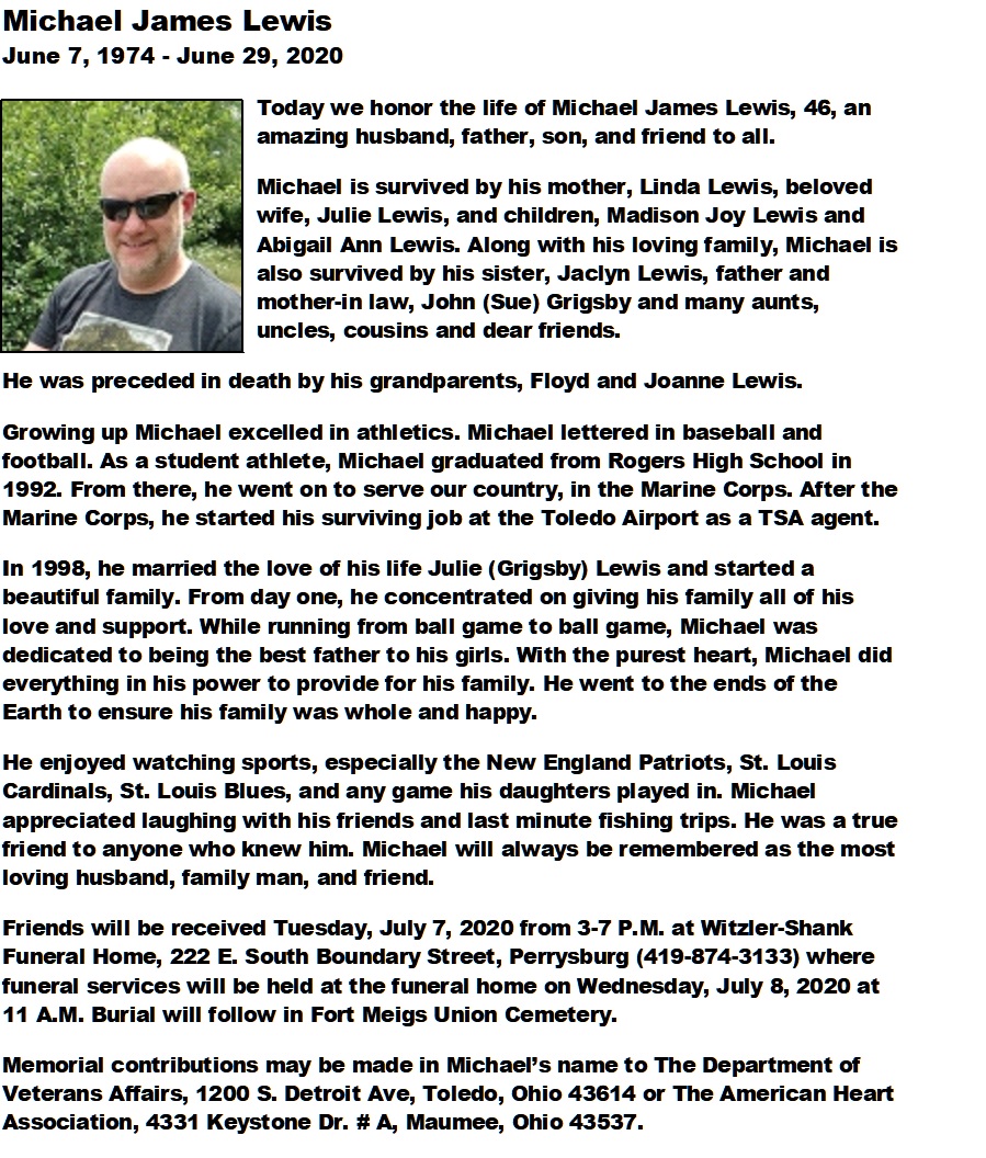 Lewis, Michael - Obituary, Witzler Shank Funeral Home, Perrysburg, OH