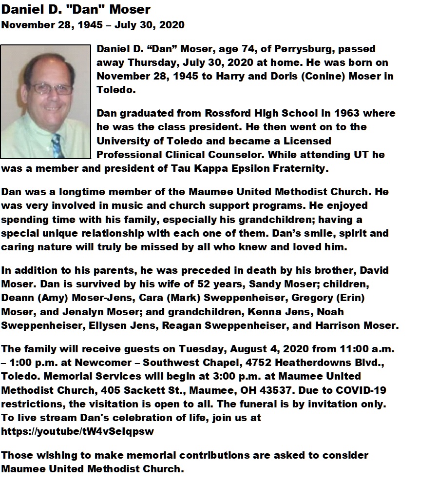 Moser, Daniel - Obituary, Newcomer Funeral Home SW Chapel, Toledo,OH
