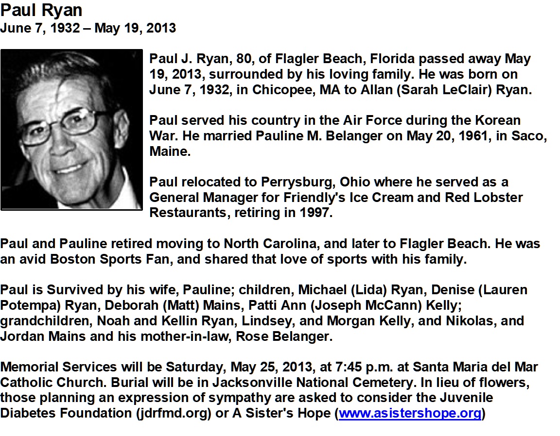 Ryan, Paul - Obituary, Clymer Crematory, Palm Coast, Florida