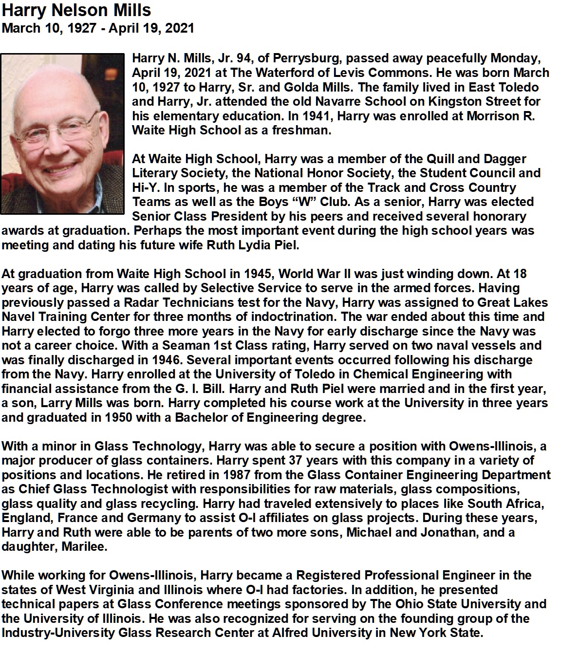 Mills Jr, Harry - Obituary pg 2, Witzler Shank Walker Funeral Home, Perrysburg, OH