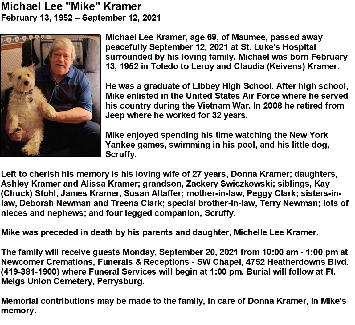 Kramer, Michael - Obituary, Newcomer Funeral Home - SW Chapel, Toledo, OH
