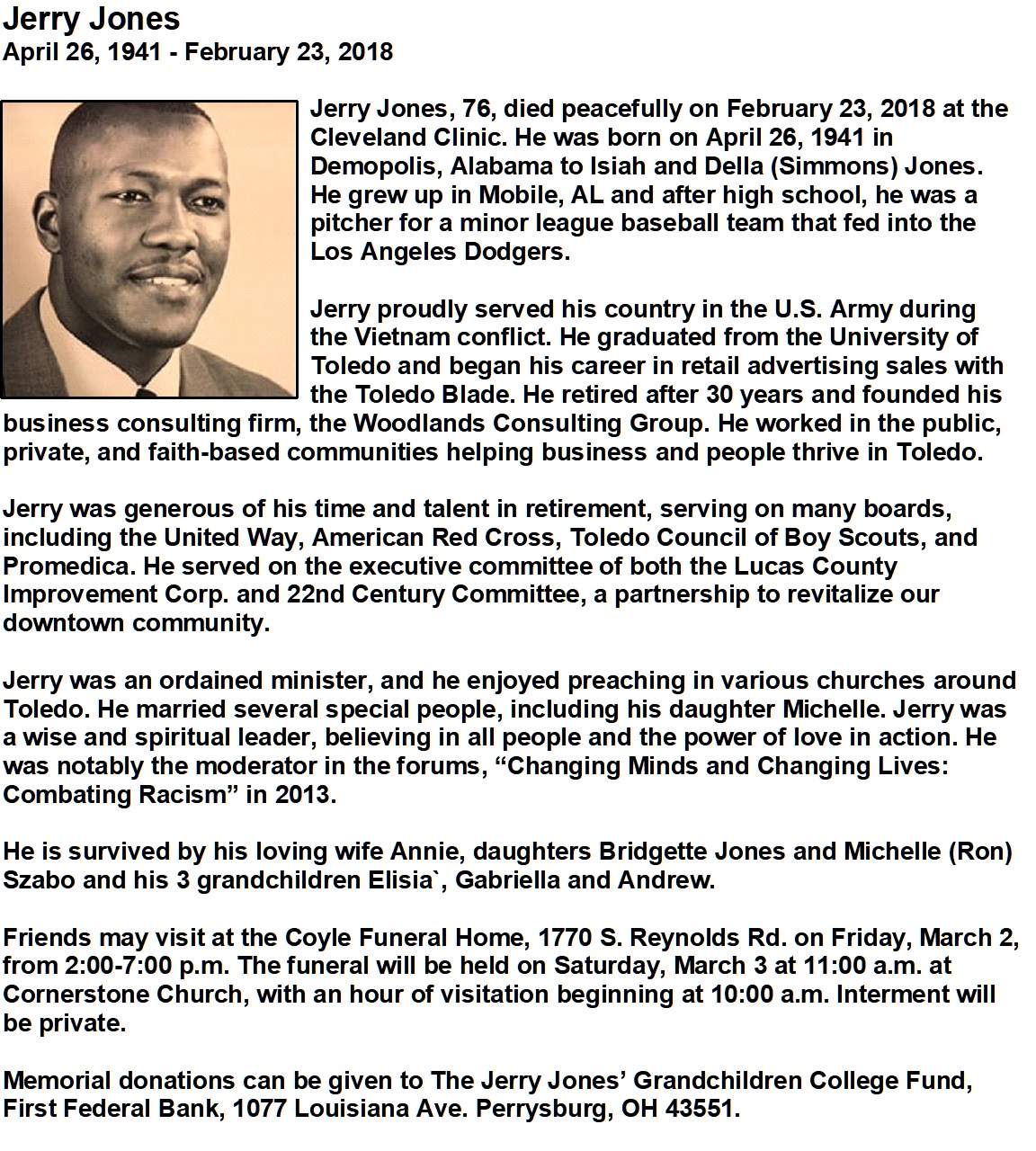 Jones, Jerry - Obituary, Coyle Funeral Home, Toledo, OH