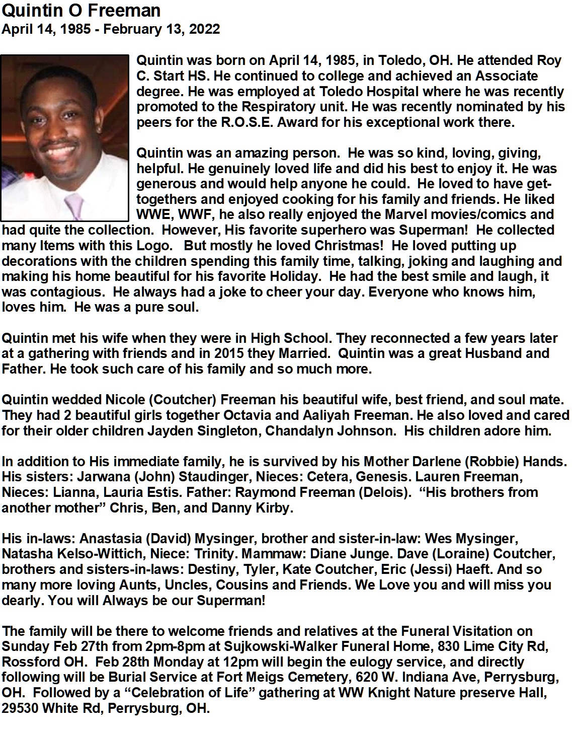 Obituary, Sujkowski-Walker Funeral Home, Rossford, OH