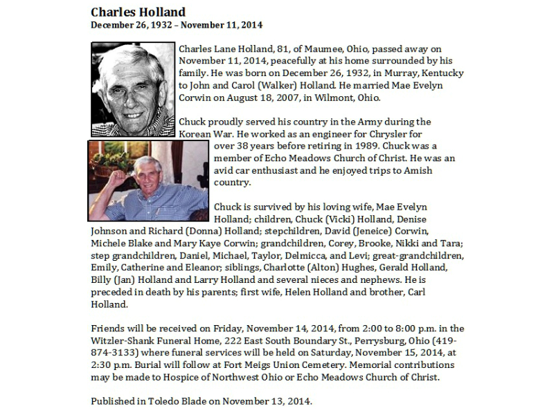 Holland, Charles, Witzler Shank Funeral Home, Perrysburg