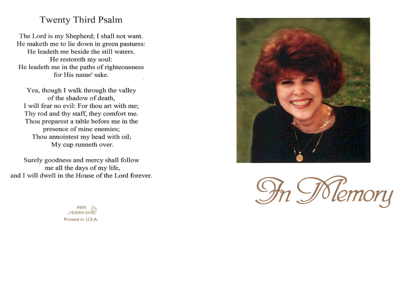 Draheim, Shirley - Remembrance Card - Inside, Witzler Shank Funeral Home, Perrysburg, OH
