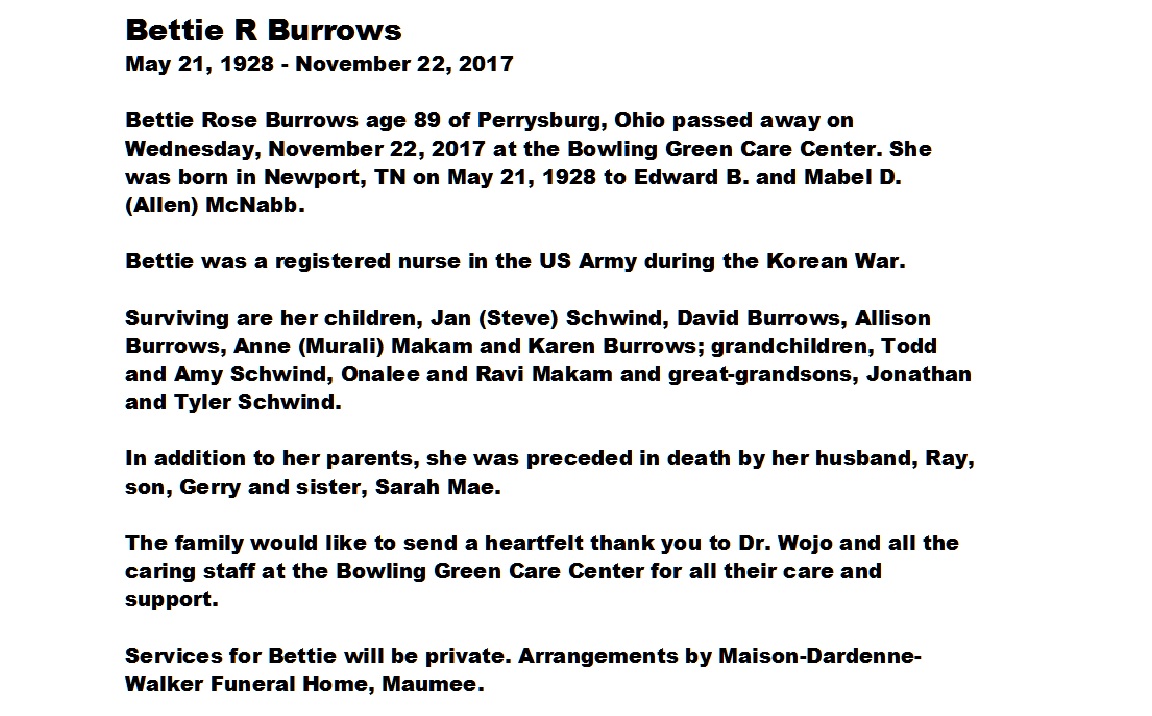 Burrows, Bettie, Maison-Dardenne-Walker Funeral Home, Maumee, OH