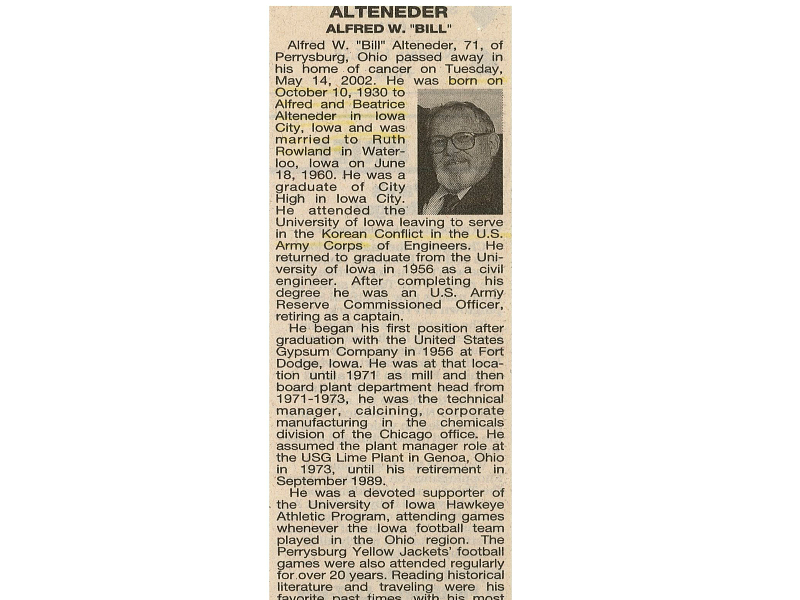 Alteneder, Alfred - Obituary pg 2, Witzler Shank Funeral Home, Perrysburg, OH