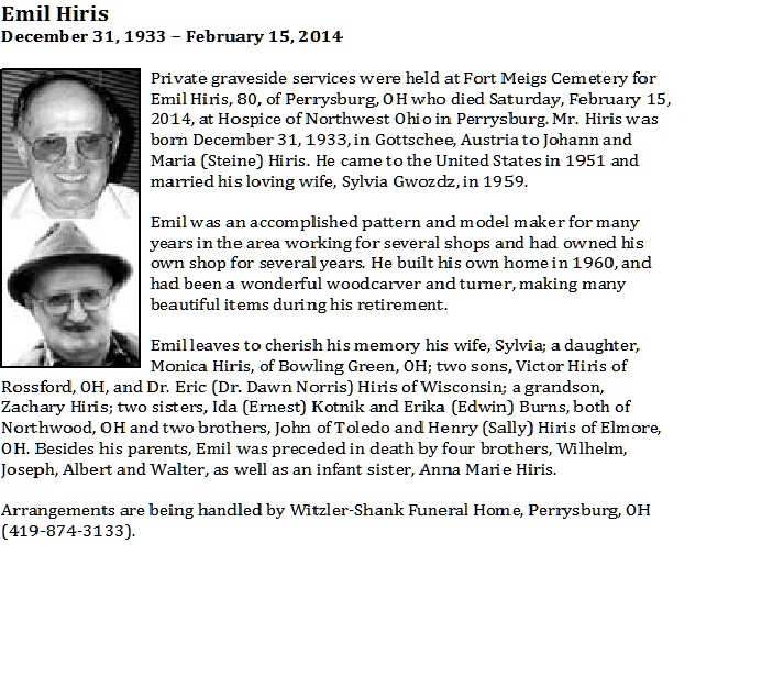 Hiris, Emil, Witzler Shank Funeral Home, Perrysburg, OH