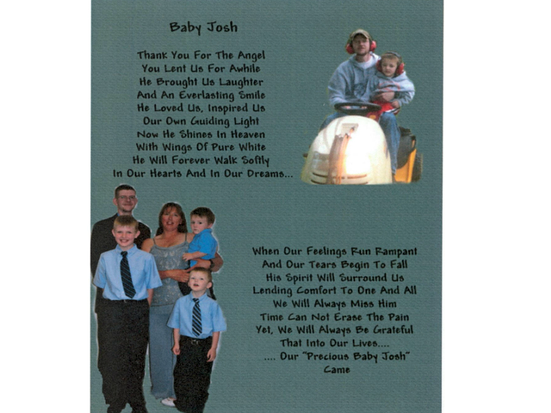 Cox, Joshua Remembrance Card Inside Right, Sujkowski Funeral Home of Rossford