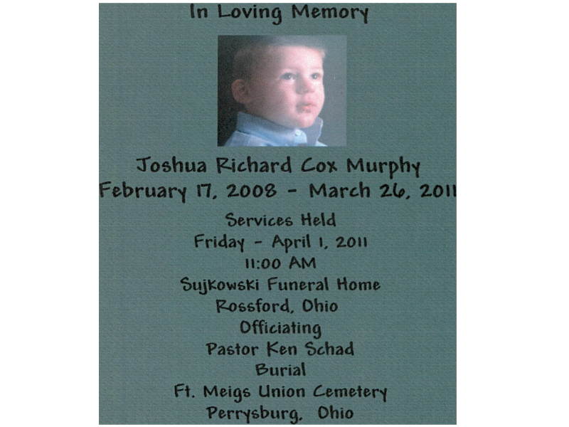 Cox, Joshua Remembrance Card Cover, Sujkowski Funeral Home of Rossford