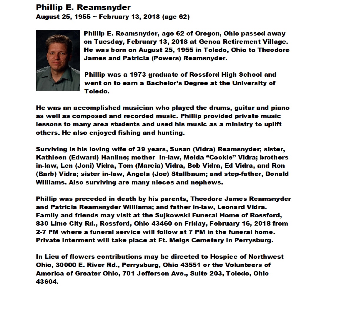 Reamsnyder, Phillip, Sujkowski Funeral Home, Rossford, OH